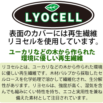 | アウターカバー | 表地 ポリエステル65% 再生繊維(リヨセル)35% 裏地 ポリエステル100%(ダブルラッセル) 中綿 ポリエステル100% |