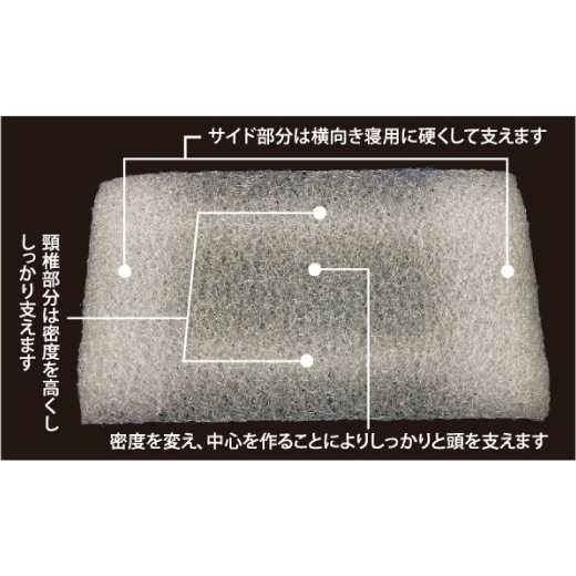 三次元の網状構造体になっているため、適度な体圧分散性で身体をしっかりと支え、寝返りがしやすくなっています。