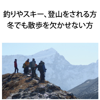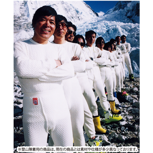 魔法瓶のように体温のあたたかさを保ちます。そのあたたかさは極寒の過酷さに立ち向かいエベレスト登頂に挑む登山家に採用されていることでも実証されています。
