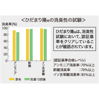 ひだまりは他繊維に比べ、熱伝導率が低いダンロンを使用することにより、外気温低下の影響を受けにくく、体温にあたためられた暖気を外に逃がさ保温力を高めます。